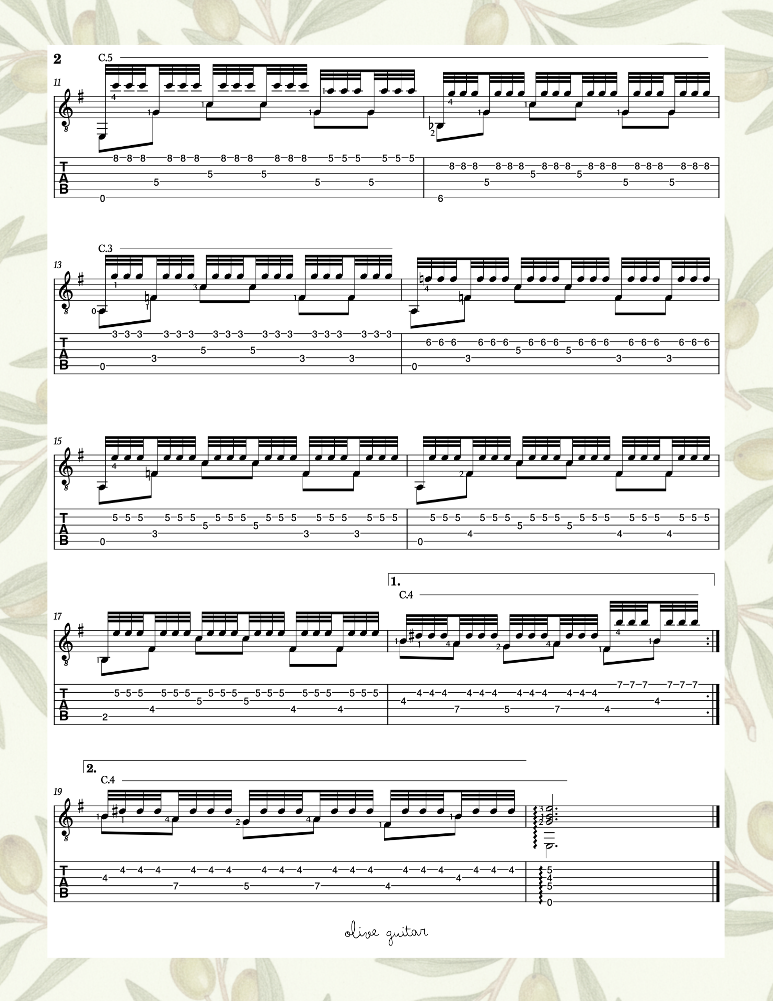 Notated for guitar by Yenne Lee
